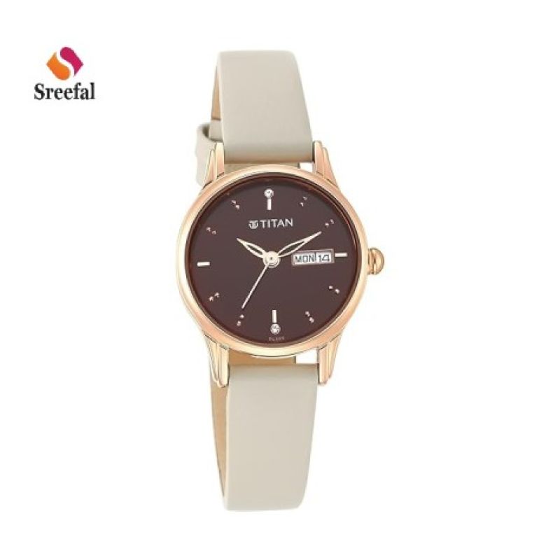 Titan Women's Lagan Chic: Studded Brown Dial Leather Analog Watch with & Elegant Hands